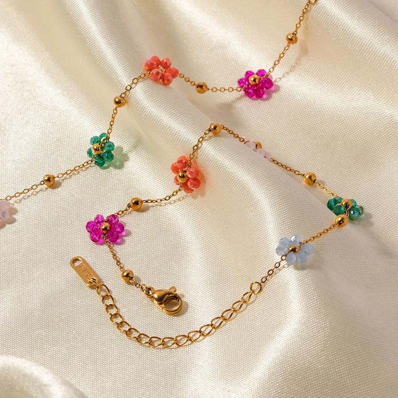 💗Durable: Gold plated stainless steel and handmade oil drip flower can keep long time for wearing.This colorful flower chain can be hand bracelets also anklet.